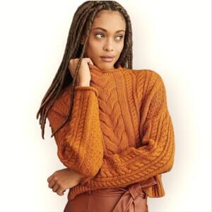 Anthropologie Pilcro Mock Cableknit Sweater Medium Petite