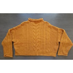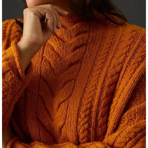 Anthropologie Pilcro Mock Neck Cable Knit Sweater Burnt Orange Size Large