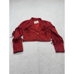 Anthropologie Pilcro Moto Jacket Red Faux Suede Fringe Preppy Boho Size XS NWT