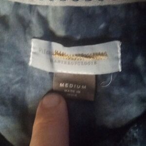 Anthropologie Pilcro Navy & Gray Tye Dye Button Front Cotton Blouse Size Medium