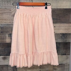 Anthropologie Pilcro Nettie Ruffled Mini Skirt, NWT. Size small. Pink/Rose is color listed on the tag. It is like a dusty peach. Super cute! A dainty mini silhouette and a sweetly ruffled hem make this skirt a feminine classic.