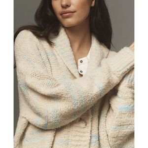 Anthropologie Pilcro OVERSIZED Cardigan Sweater Womens XS Beige Blue Cozy $198