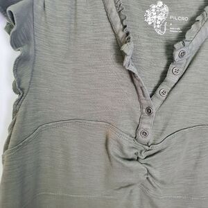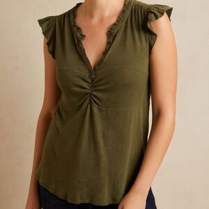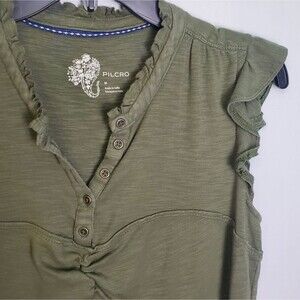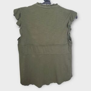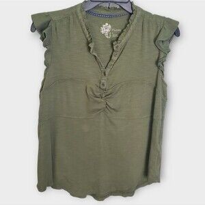 Anthropologie Pilcro Olive Green Ruffle Sleeve Henley Tank Top Size Medium