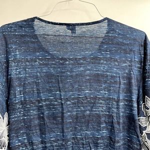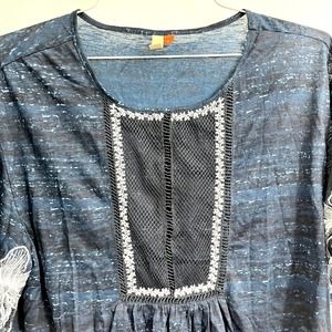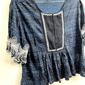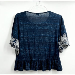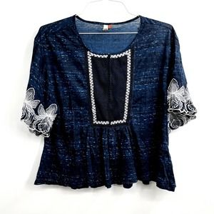 Anthropologie Pilcro Orchid Embroidered Top Boho Peasant Flowy Navy Blue