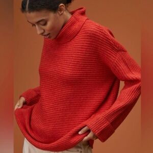 Anthropologie Pilcro Oversized Cowl Neck Turtleneck Ribbed Sweater Red Small