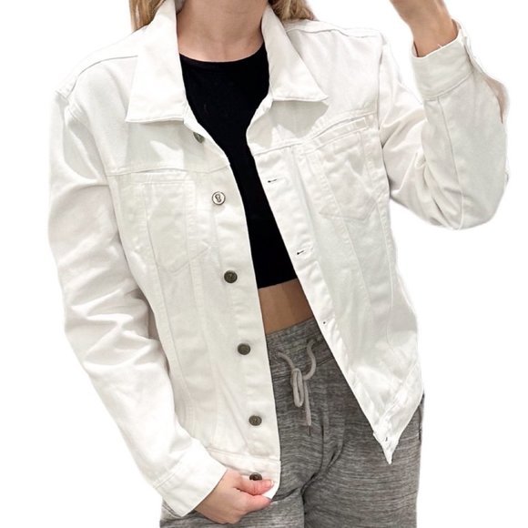 Anthropologie Pilcro Oversized Denim Jean Boyfriend Jacket in Off-White Size M