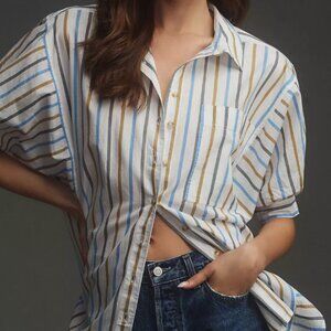 Anthropologie Pilcro Painter Buttondown Shirt Oversized Short Sleeve Striped