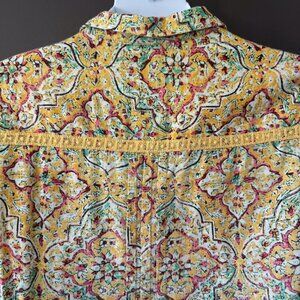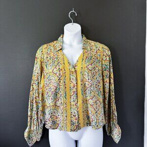 New with Tags. Elevate your style with this relaxed, button-down shirt from Pilcro, featuring a vibrant yellow hue. The notched collar adds a touch of sophistication, while the airy fabric ensures comfort and ease. Perfect for a casual day out or a laid-back office look.