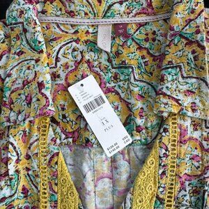 Anthropologie Pilcro Pintuck Peasant Blouse 1X Plus NWT
