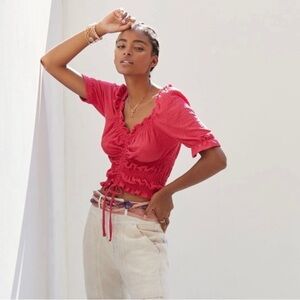 Anthropologie Pilcro Puff Sleeved Crop Top in Rose Red Pink Small