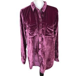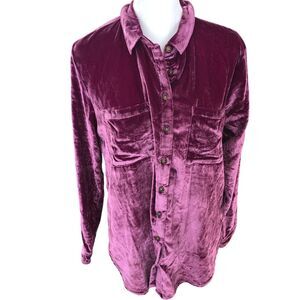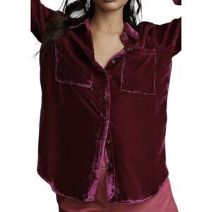 Anthropologie Pilcro Purple Crushed Velvet Hadley Classic Button Front Blouse S