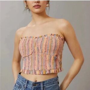 Anthropologie Pilcro Rainbow Pink Strapless Smocked Crop Top size L