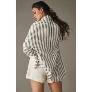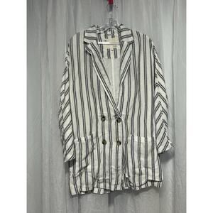 Anthropologie Pilcro Relaxed Striped Boho Lagenlook Linen Blazer Jacket XS office oversized