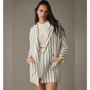 Anthropologie Pilcro Relaxed Striped Boho Lagenlook Linen Blazer Jacket XS
