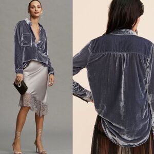 Anthropologie Pilcro Relaxed Velvet Button Down Medium Grey