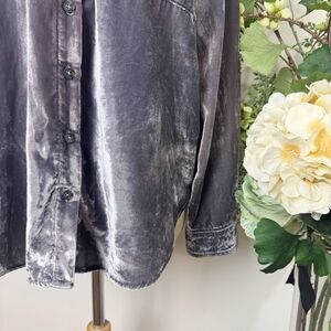 Anthropologie | Pilcro Relaxed Velvet Button Down | Medium | Grey shirt