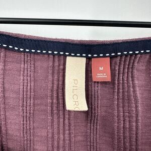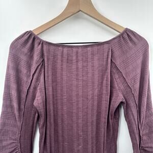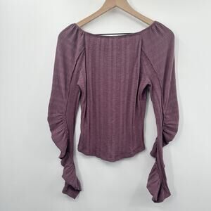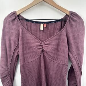 Anthropologie Pilcro Ribbed Ruched-Sleeve Top in Mauve Purple Size M