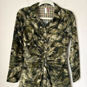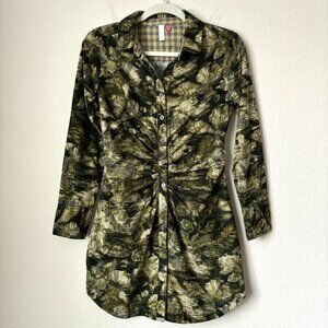 Anthropologie Pilcro Ruched Corduroy Button Down Long Sleeve Mini Shirt Dress