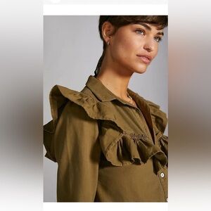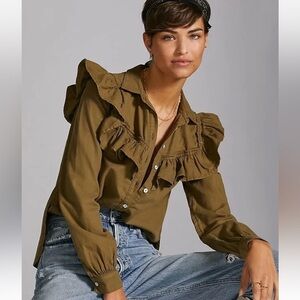 Anthropologie Pilcro Ruffled Chambray Buttondown Medium