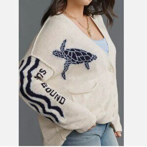 Anthropologie Pilcro Sea Turtle Cardigan Sweater Surf Bound Nautical Size 2X NWT