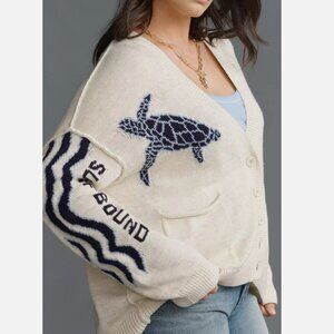 Anthropologie Pilcro Sea Turtle Cardigan Sweater Surf Bound Nautical Size XL NWT