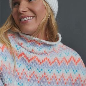 Anthropologie Pilcro Selene Fair Isle Chenille White Pastel Sweater - XL