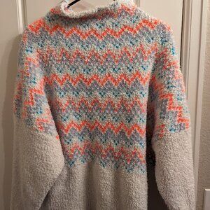 Anthropologie Pilcro Selene Sweater - mock neck style sweater with a fun zig zag pattern. Accent colors are an orange and light blue. Bought used - only worn by me a few times this past winter.