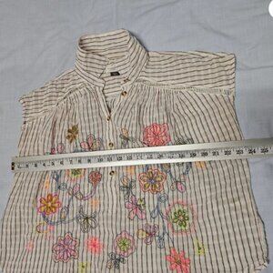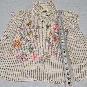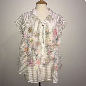 Half button-down ("popover") style is embroidered with flowers , making it a versatile addition to any wardrobe. Perfect for both casual and formal occasions, this top exudes sophistication and style.