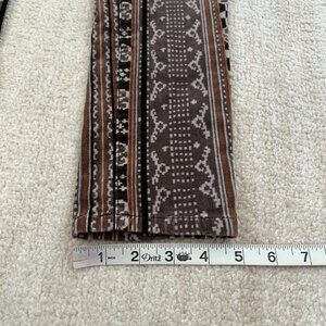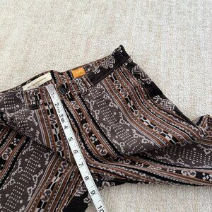 Boho printed micro corduroy pants. Front pockets are faux. Fabric has stretch