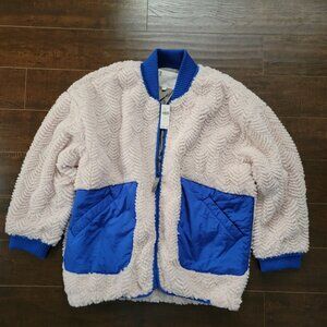 Anthropologie Pilcro Sherpa Jacket Womens L Faux Fur Cozy Boho Chic Oversized