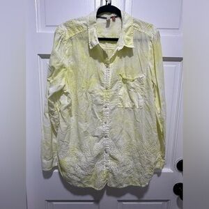 Anthropologie Pilcro Shirt Women XL Yellow Tie Dye Embroidered Eyelet Funky Boho