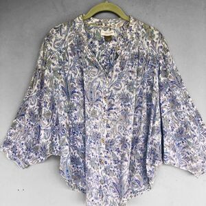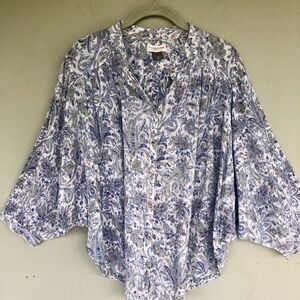 Anthropologie Pilcro Sidney Batwing Blouse XL Blue Paisley Peasant Boho Flowy