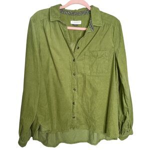 Anthropologie Pilcro Sigourney Green Corduroy Button Down Top M