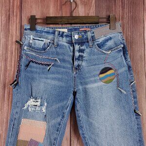 Anthropologie Pilcro Size 26 Slim Boyfriend Embroidered Patch Mid Rise Jeans