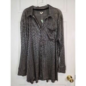 Anthropologie Pilcro Size 2X Metallic Buttondown Tunic Blouse Black Silver NWT