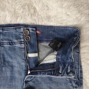 Add a touch of polish to your denim rotation with these Pilcro skinnies. Featuring a high-rise silhouette with a darted waist for a tailored fit, these jeans blend structure with a modern, feminine edge. The distressed detailing and silvertone hardware lend a chic, lived-in finish, while side slant and back patch pockets add subtle sophistication. Perfectly versatile, they pair effortlessly with a crisp blouse or a sleek sweater for a refined off-duty look.