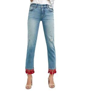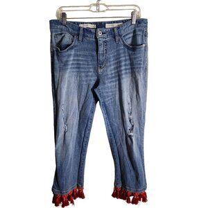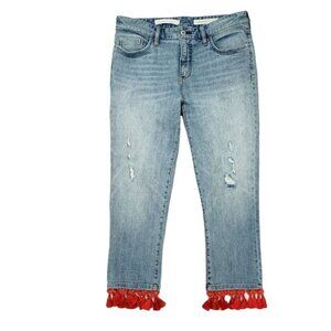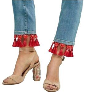 Anthropologie Pilcro Slim Boyfriend Red Tassel Bead Hem Size 30p