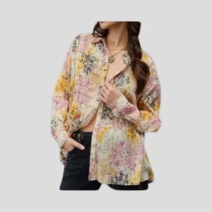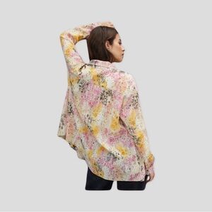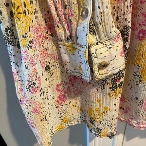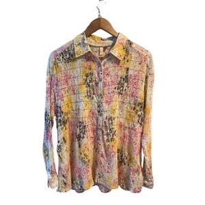 Anthropologie Pilcro Smocked Printed Buttondown Shirt Blouse Size XS