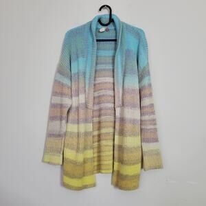 Anthropologie Pilcro Space Dye Ombre Rainbow Stripe Open Cardigan XS