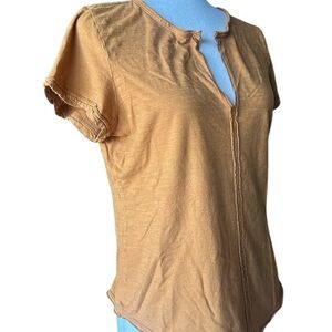 Anthropologie Pilcro Spliced Neck Tee Pressed Botanical Mustard Yellow Size M