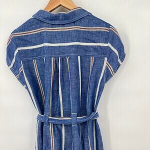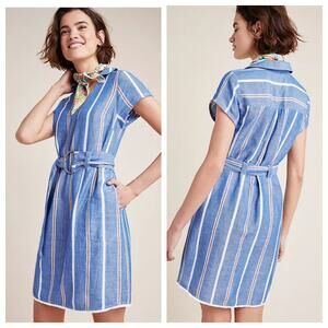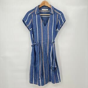 Anthropologie Pilcro Striped Blue Belted Linen Blend Dress Women's 4