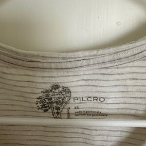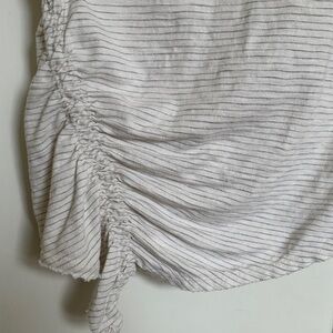 Anthropologie Pilcro XS gray and cream tank top. Stylish tank top with subtle stripes. Features a side ruched detail. Perfect for casual wear. EUC - no stains or damage.