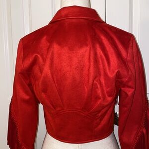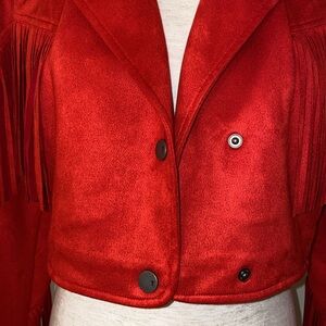 Don't forget a jacket – the season's staple is having a moment. Crafted from faux suede, this cropped moto features Western-inspired fringe details for added movement.