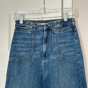 Anthropologie Pilcro Super Wide Leg High Rise Medium Wash Jeans Silver Belt 26