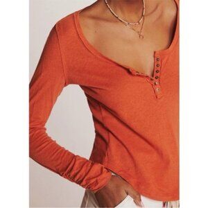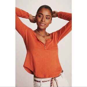 Anthropologie Pilcro Sustainable Sensual Henley Coral Rust Pumpkin Orange New XS