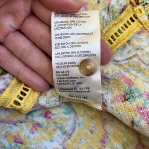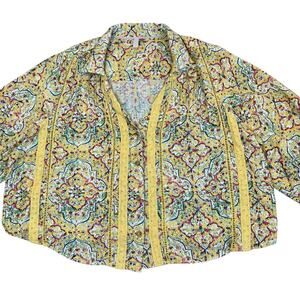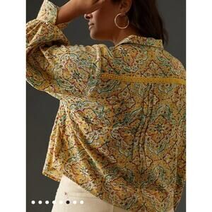 Anthropologie Pilcro Sz 1X Pintuck Peasant Blouse Yellow Floral Crochet Cottage