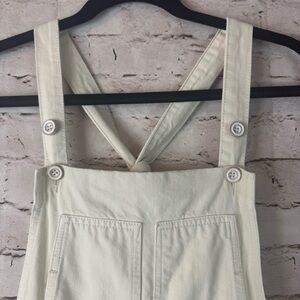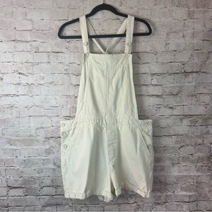 Anthropologie Pilcro Sz 32 Relaxed Short Overalls Ivory Cuffed Adjustable Straps