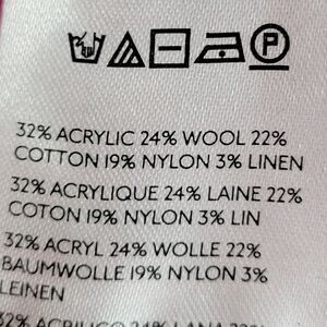 * 32% acrylic, 24% wool, 22% cotton, 19% nylon, 3% linen