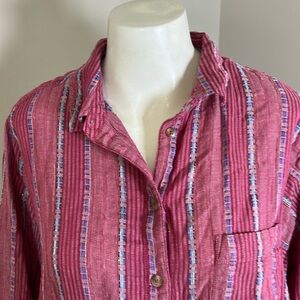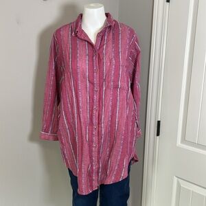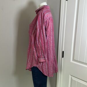 Anthropologie Pilcro The Bo Boyfriend Embroidered Buttondown Raspberry Pink Sz S