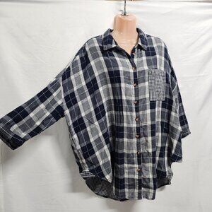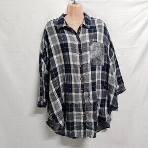 Anthropologie Pilcro The Bo Plaid Relaxed Top Blouse Shirt Size M/L